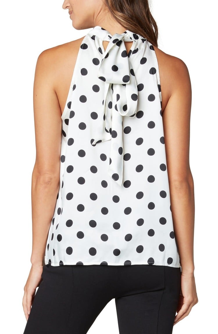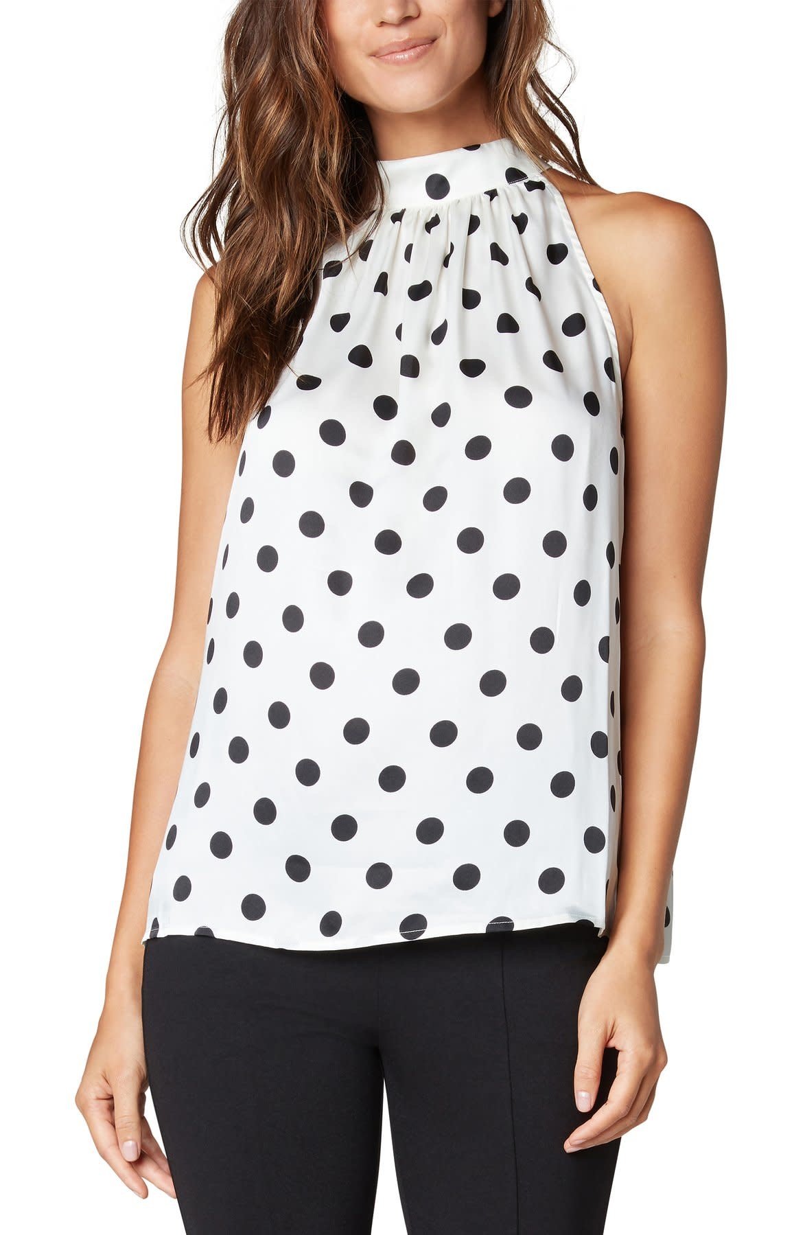 Sleeveless Mock Neck Top Black Polka Dot